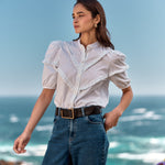Nuestra Blusa Ipetí es un icono de la marca. Se caracteriza por su femineidad, versatilidad y comodidad, ya que es una blusa holgada la cual tiene detalles que la hacen ser única, como su manga agolpada y sus ruchas en la zona delantera, las cuales le entregan ese toque romántico. Al ser una tela ligera, esta aporta en movimiento y una caída recta.