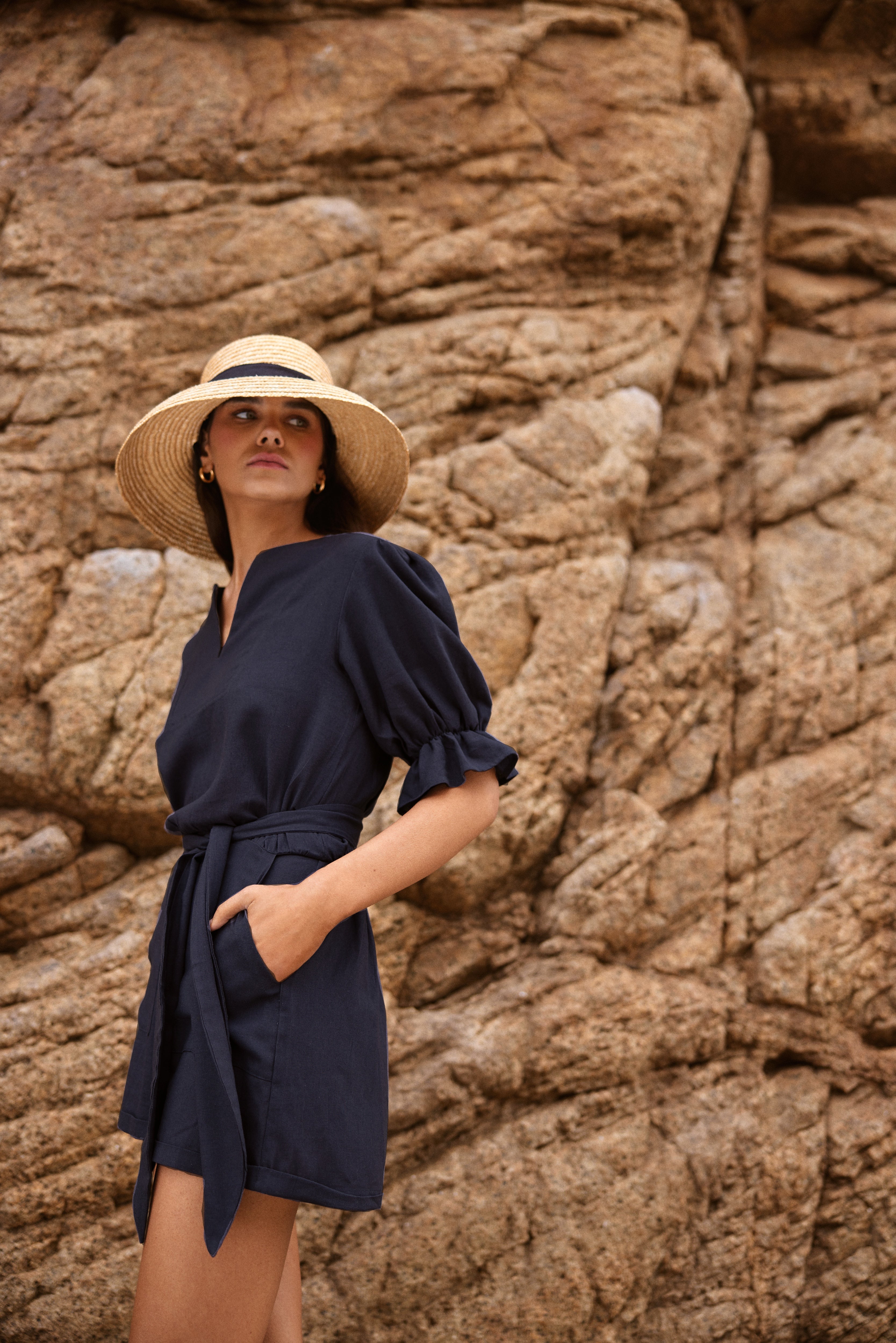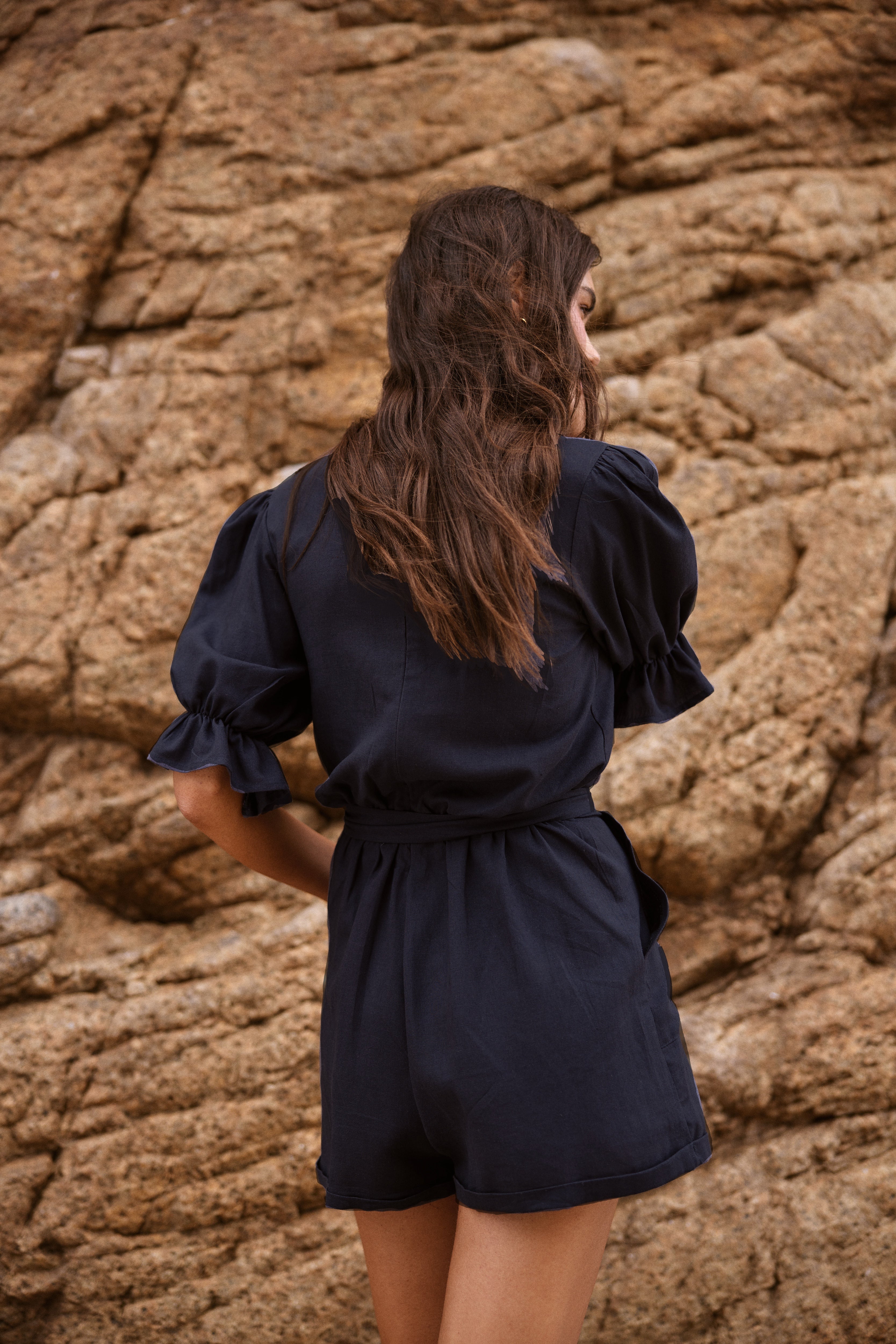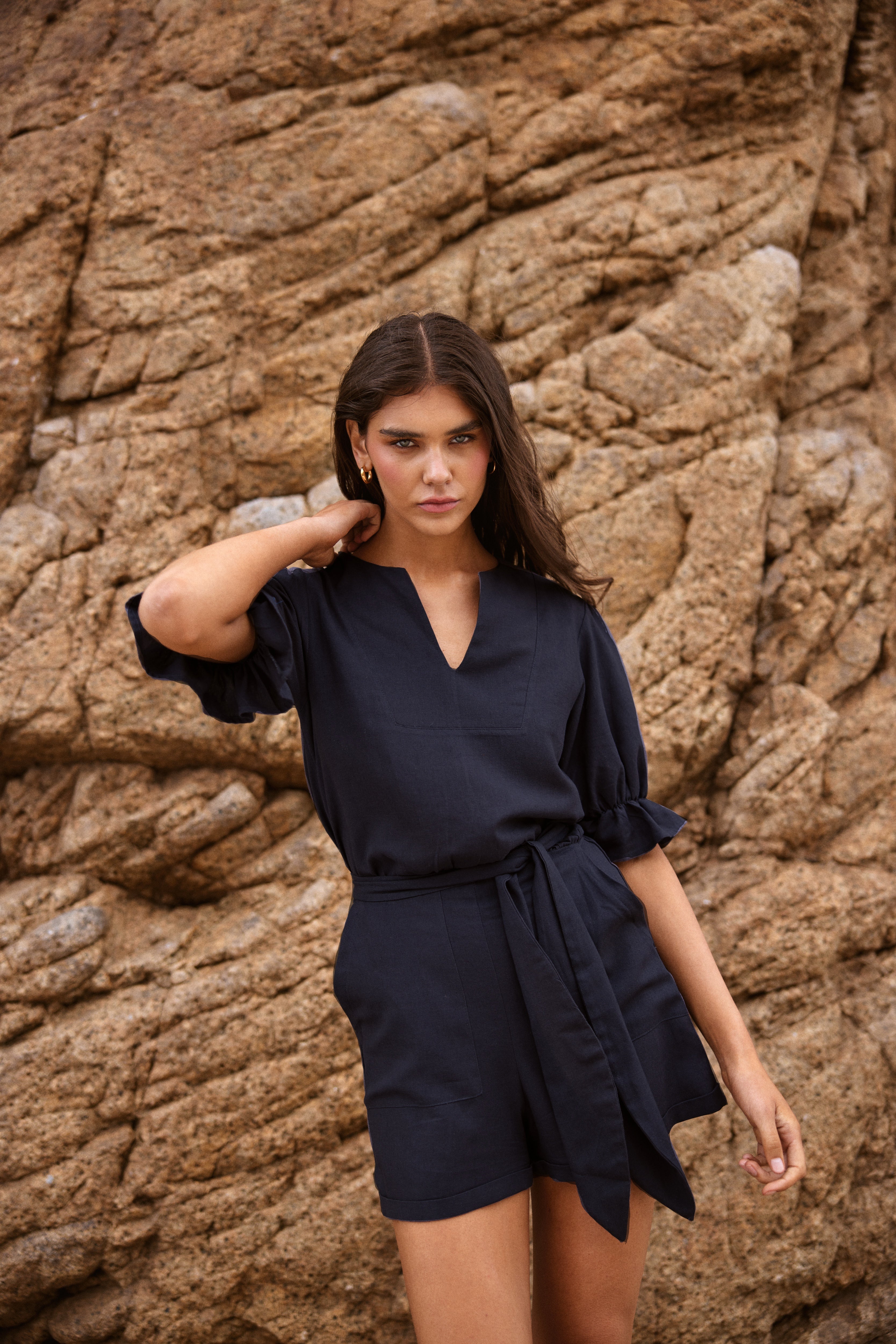 Nuestro enterito Giri combina comodidad y feminidad en un diseño único. Con mangas globo y un elegante escote en V, este enterito resalta la silueta de forma sutil y sofisticada. El lazo ajustable en la cintura permite adaptarlo a diferentes estilos y ocasiones.