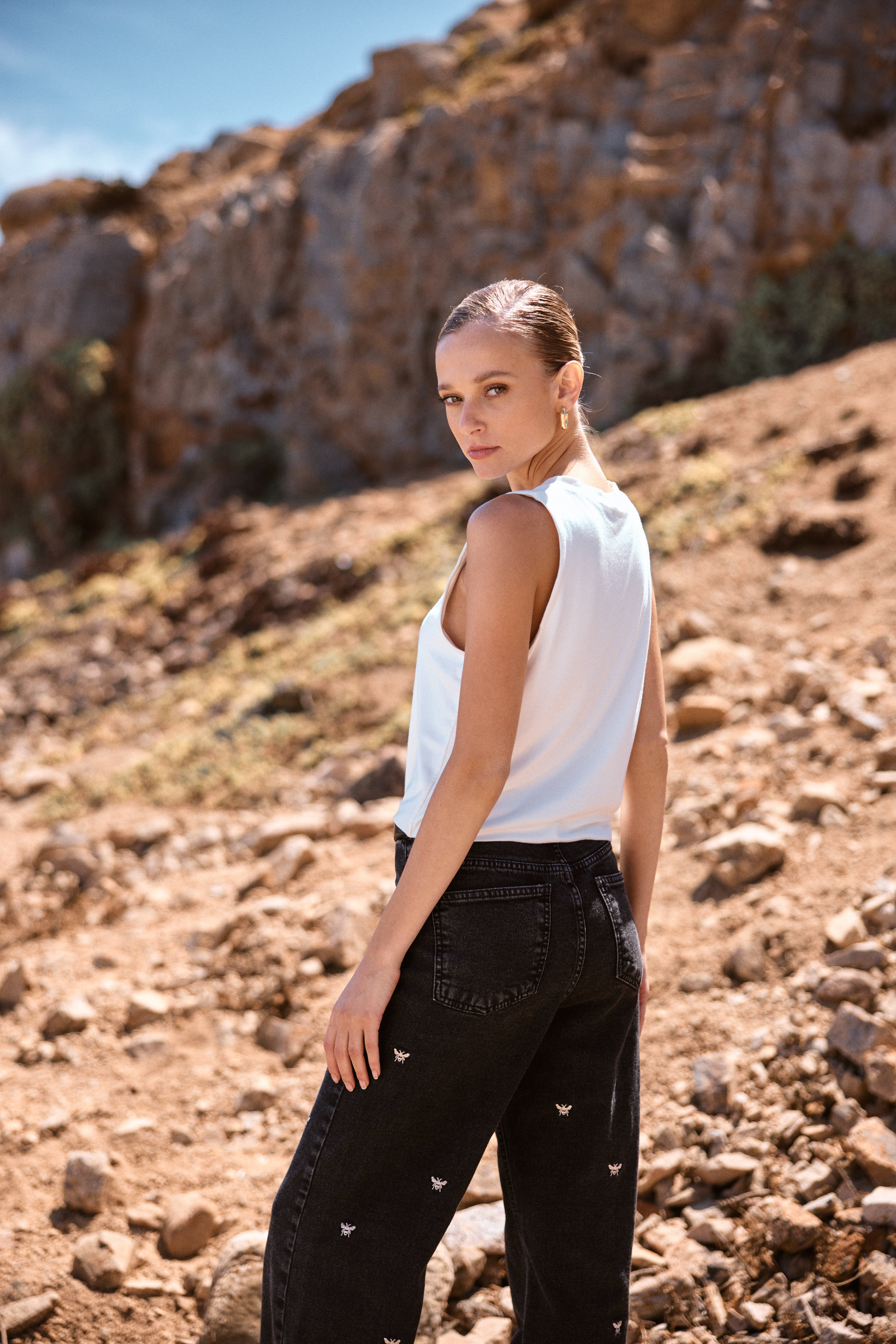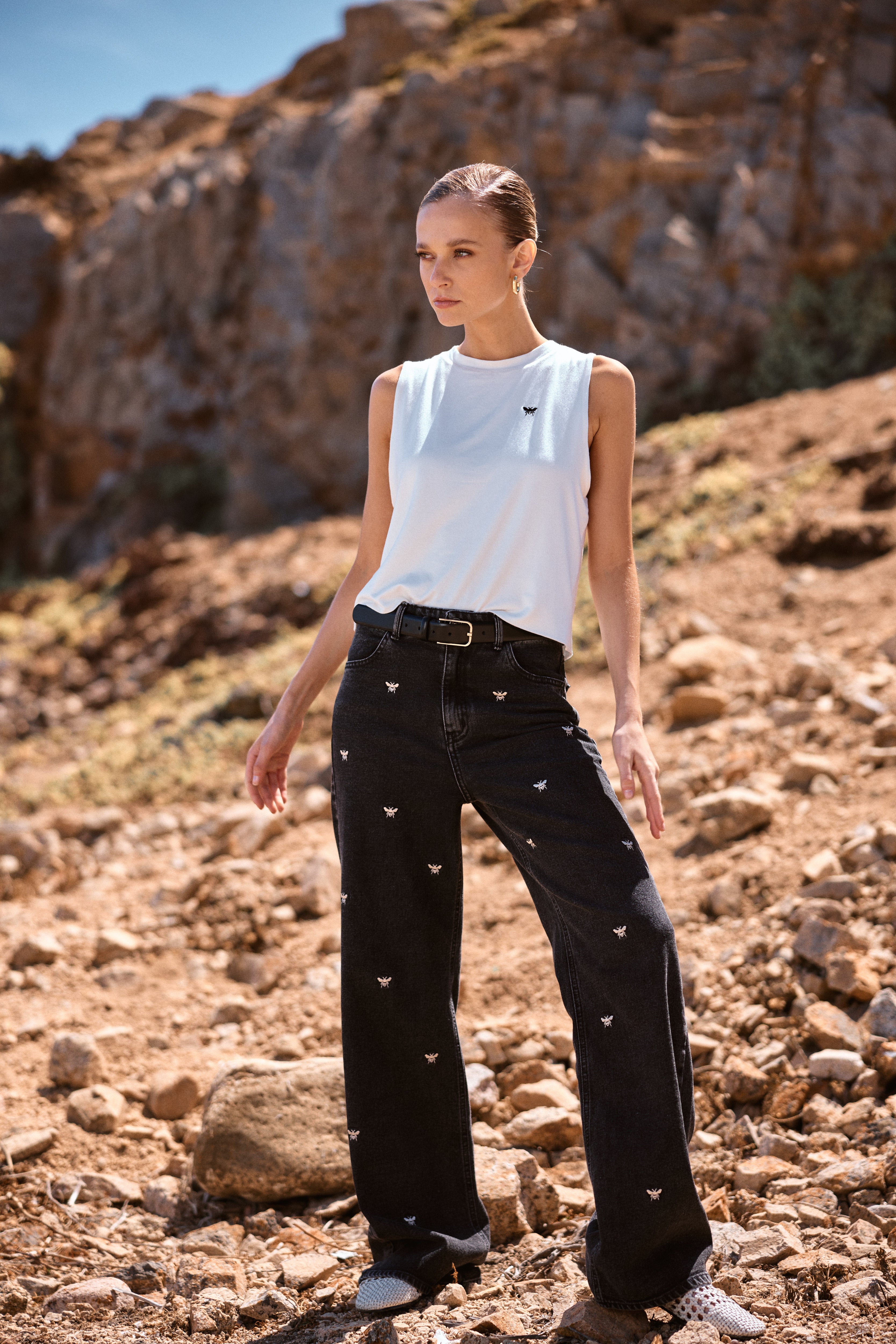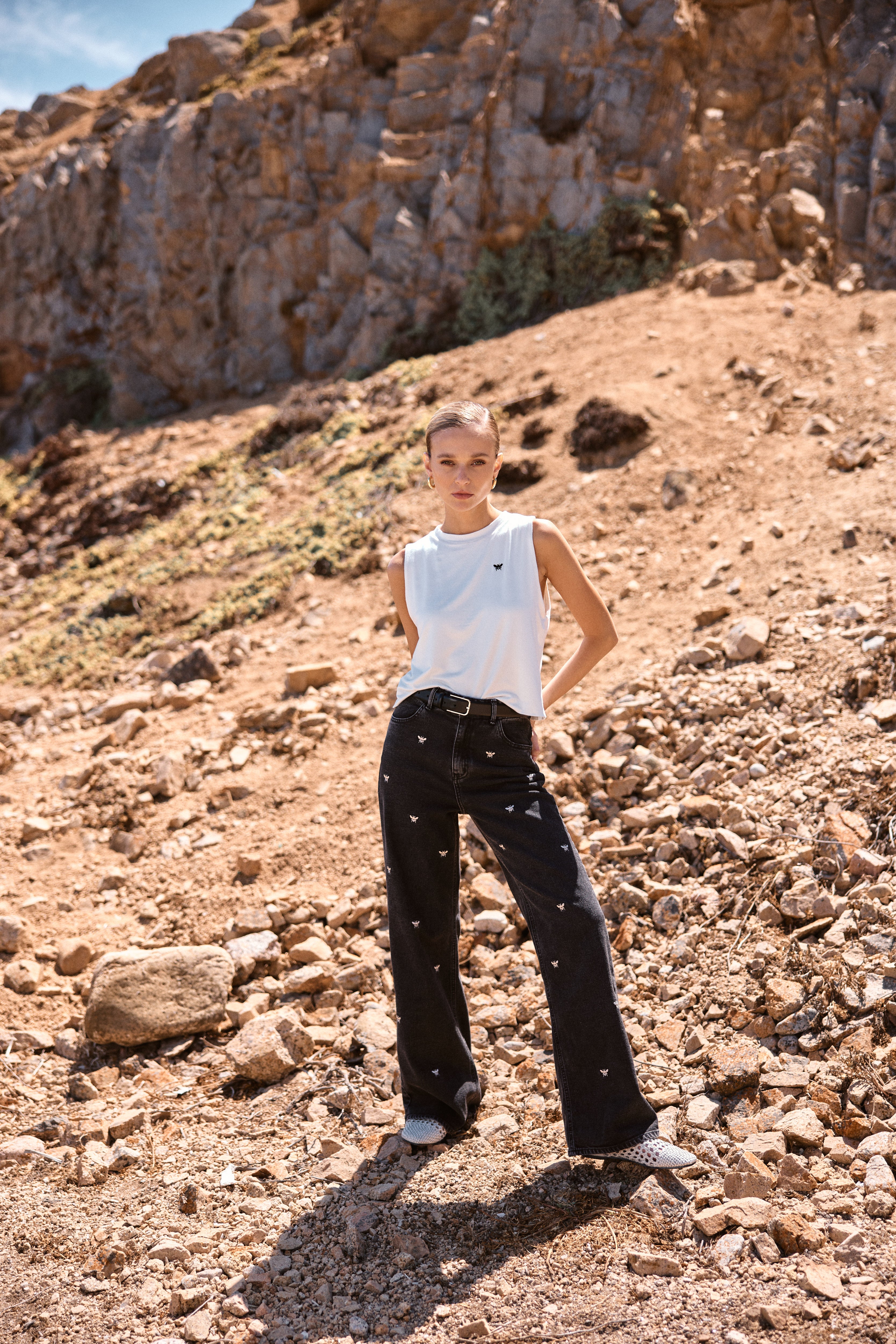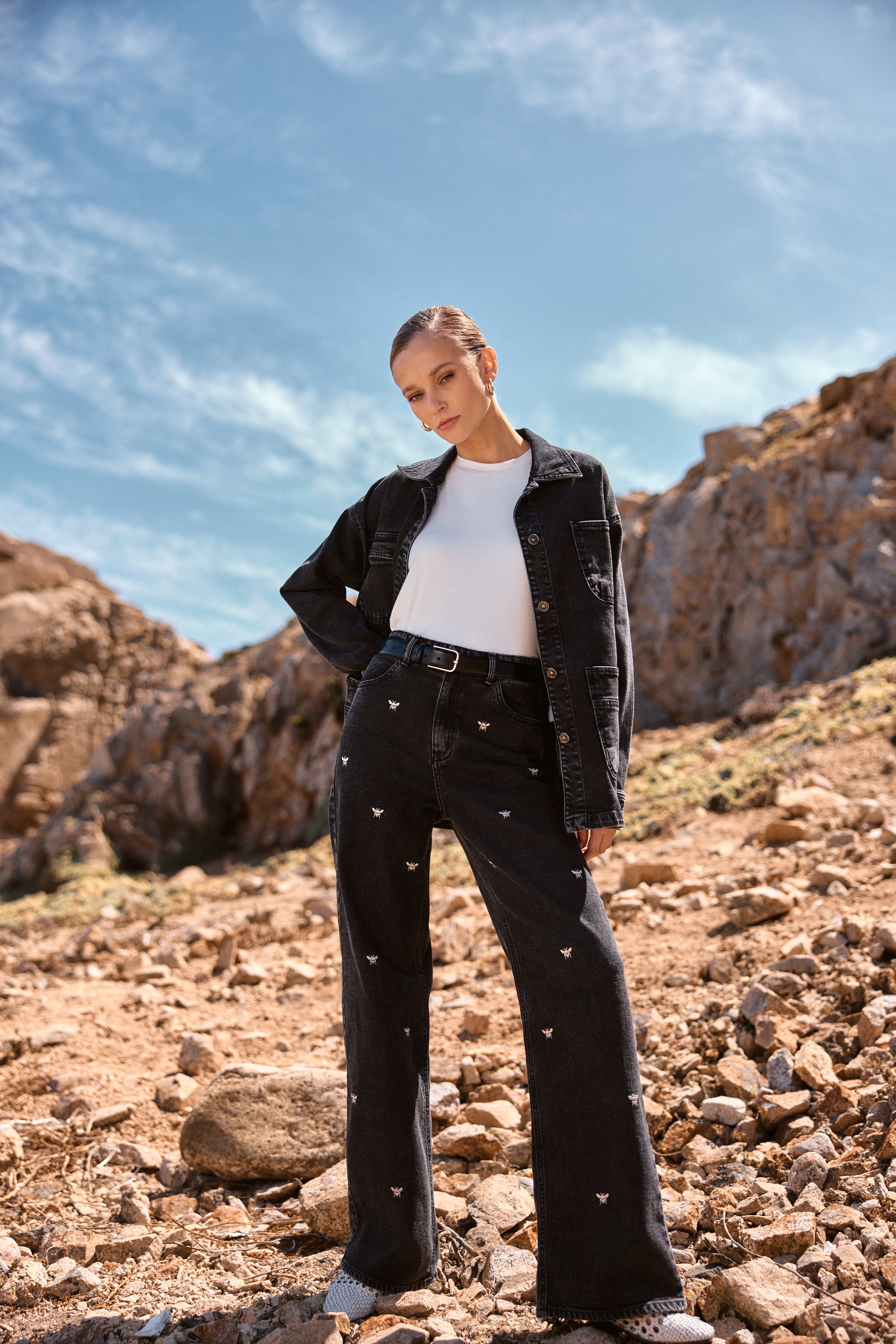 Los jeans Silene bordados sin duda son los favoritos de todas. Se distinguen por ser de los más cómodos y codiciados de MUTH, combinando un ajuste excepcional con una forma recta única que resalta entre los demás, combinados con sus bordados beige donde toman protagonismo. Este pantalón cuenta con una bota ancha del cuál ayuda a estilizar y resaltar cualquier outfit. Perfecto para cualquier ocasión en la que quieras destacar.