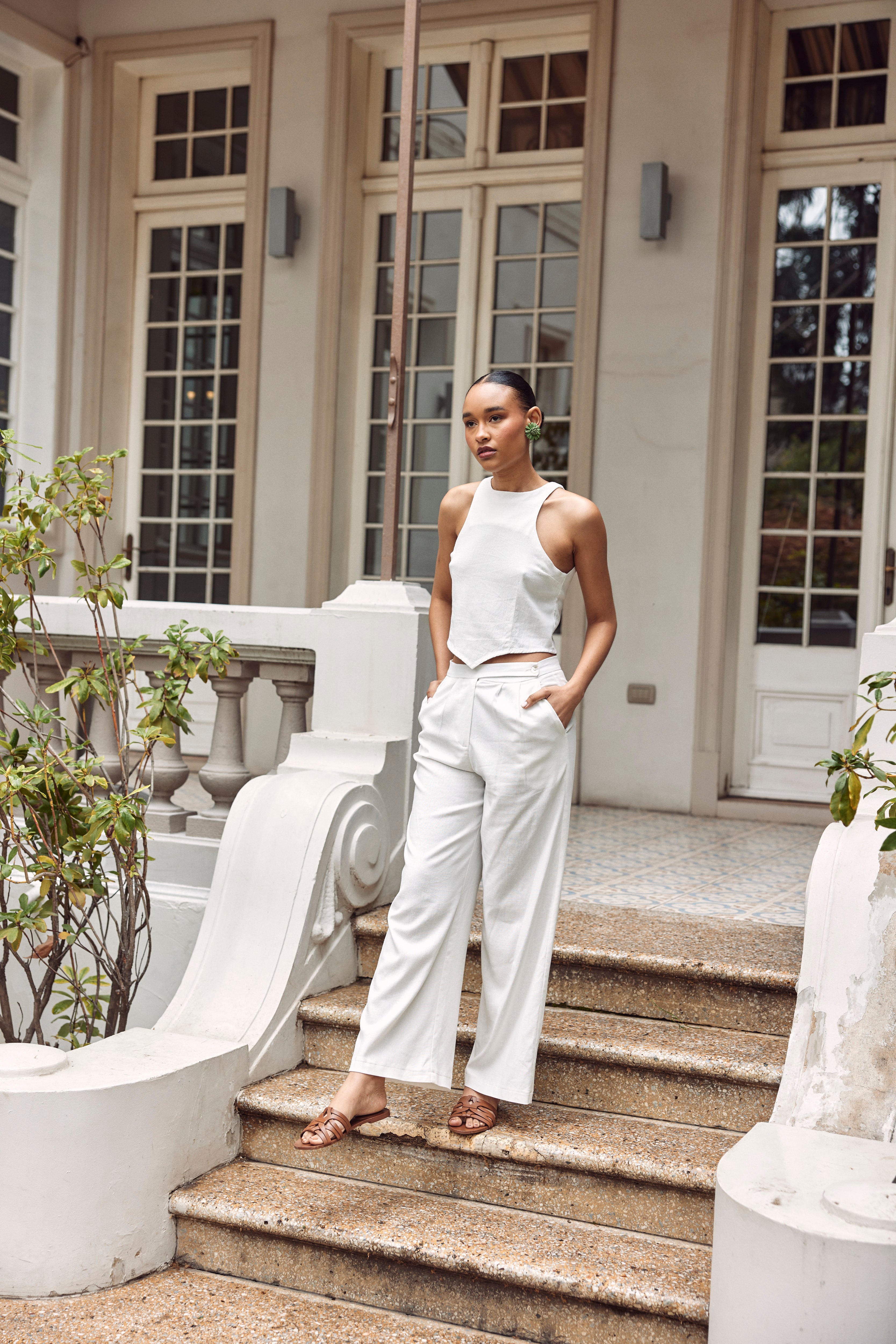 Su confección en lino aporta ligereza y a la vez cuerpo a la prenda.