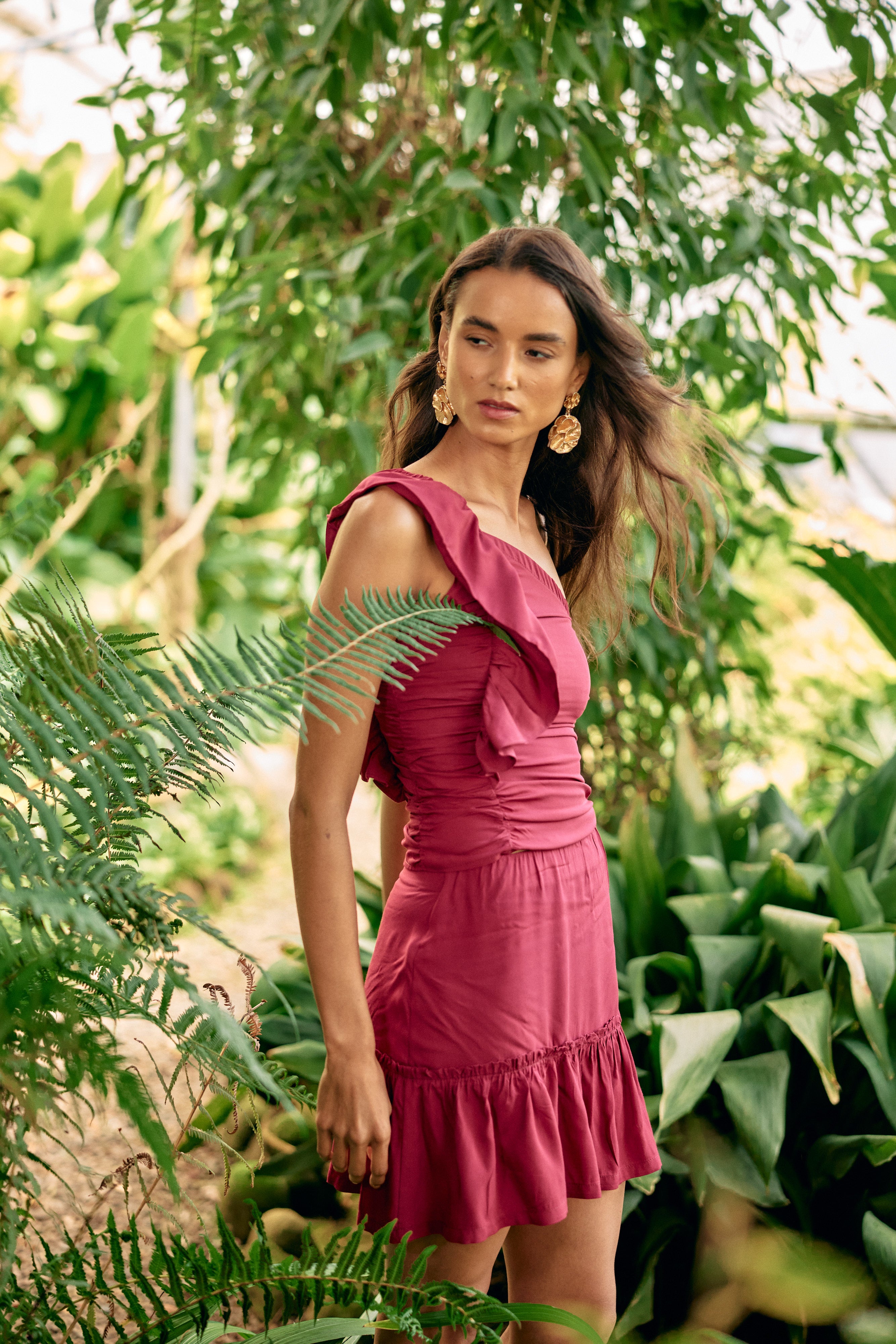 Nuestra pollera Acandí Mor es un clásico MUTH. Esta se caracteriza por su femineidad, versatilidad y comodidad. Es una prenda holgada, que posee elástico y cierre para un mejor calce. Cada faldón tiene ruchas, las cuales le dan ese toque romántico y femenino. Combínalo con el top Fe y Sorá para crear un look único.