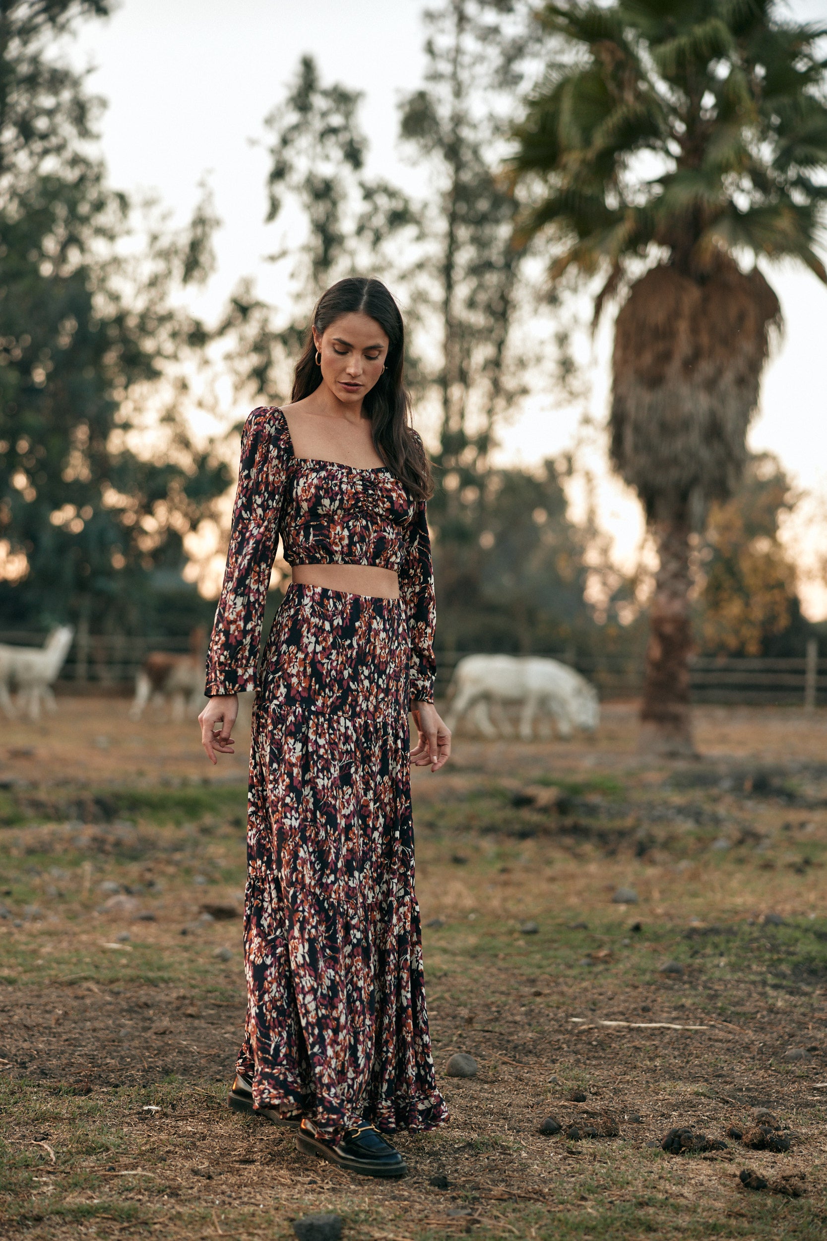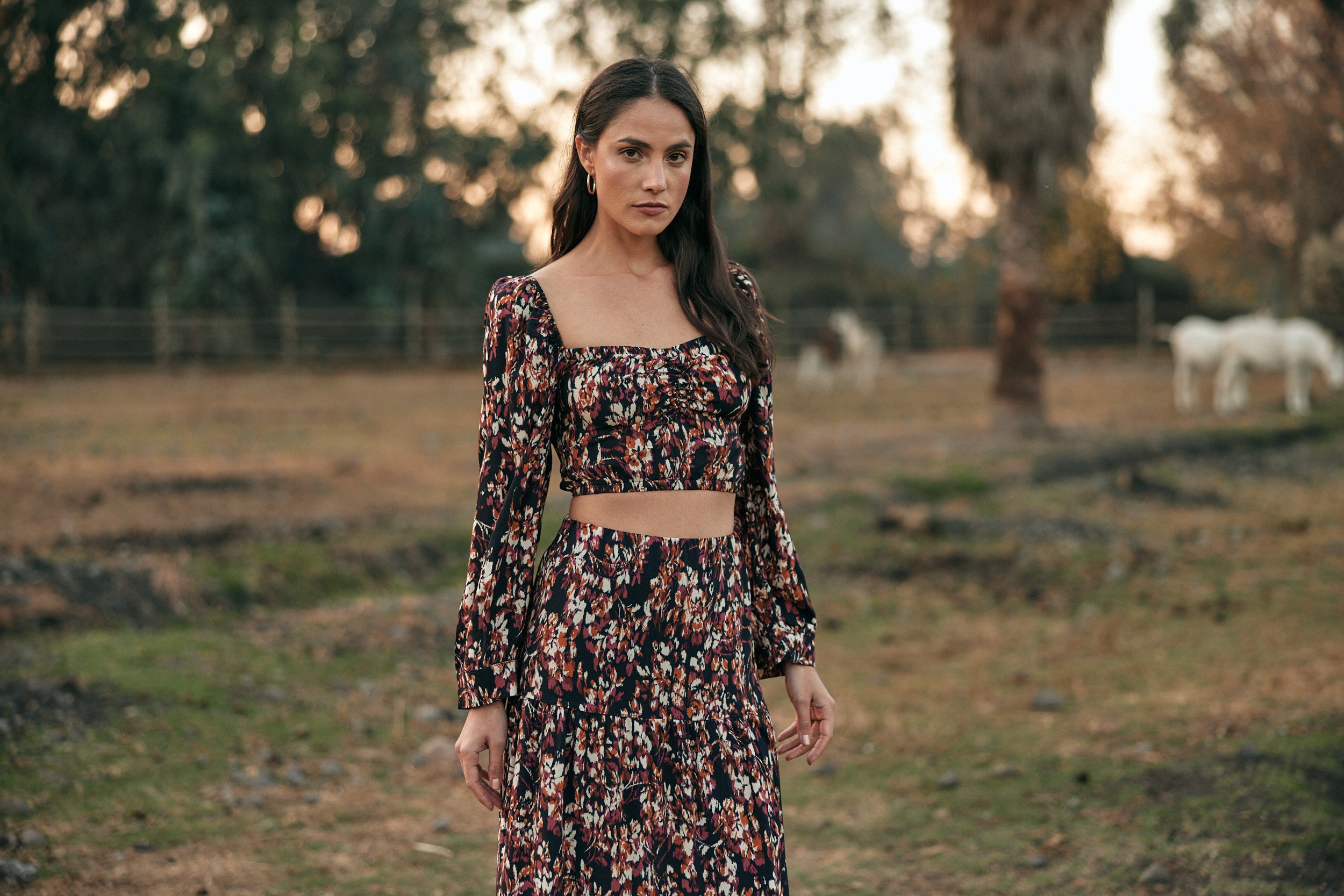 Nuestro top Lille Fleurs es un modelo único y elegante. Se destaca por su novedosa forma y detalles. Es un top apegado al cuerpo, con manga larga y tajalí abotonado en sus puños. En su espalda tiene un lazo que entrega ese toque elegante y femenino, además de una terminación elasticada, la cual permite una mejor adaptación al cuerpo. Su versatilidad hace que esta pueda ser utilizada en diferentes ocasiones, y con distintos complementos. Recomendamos utilizarla a juego con nuestra pollera Elise para crear un look único y elegante.