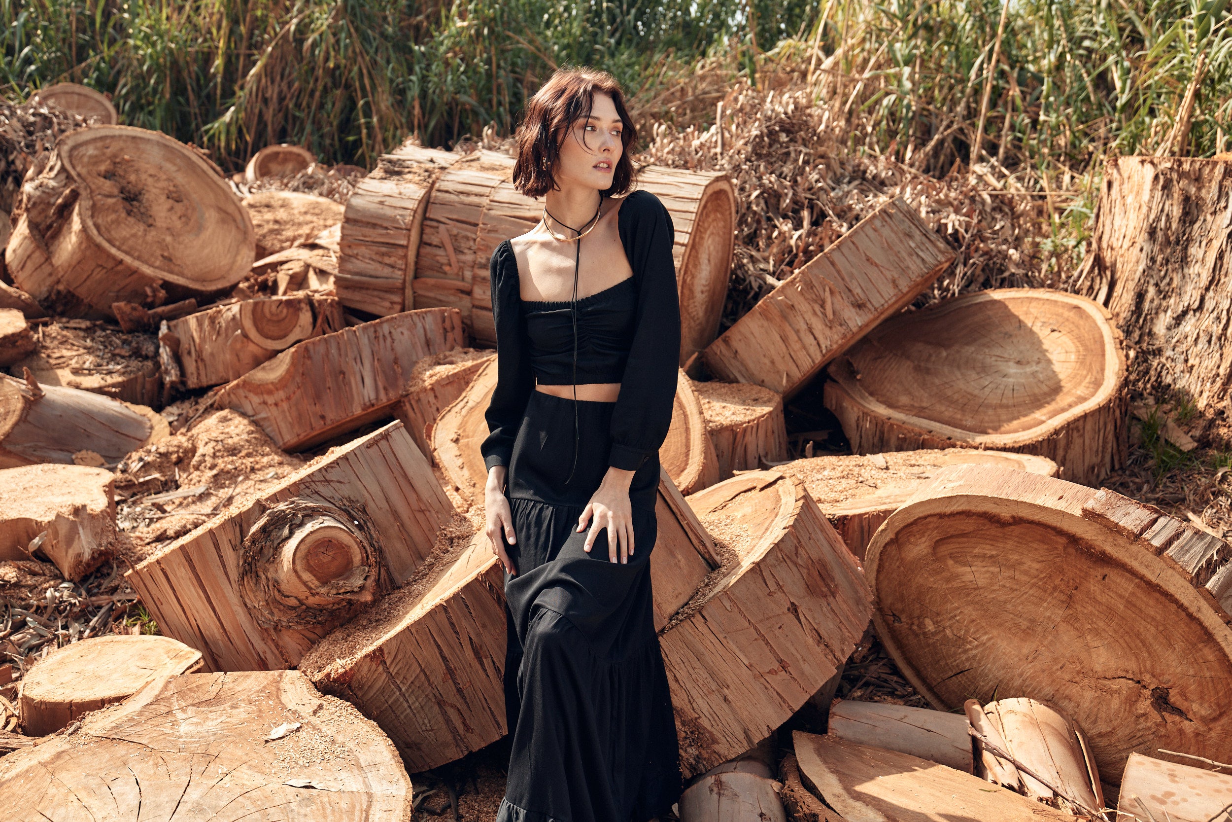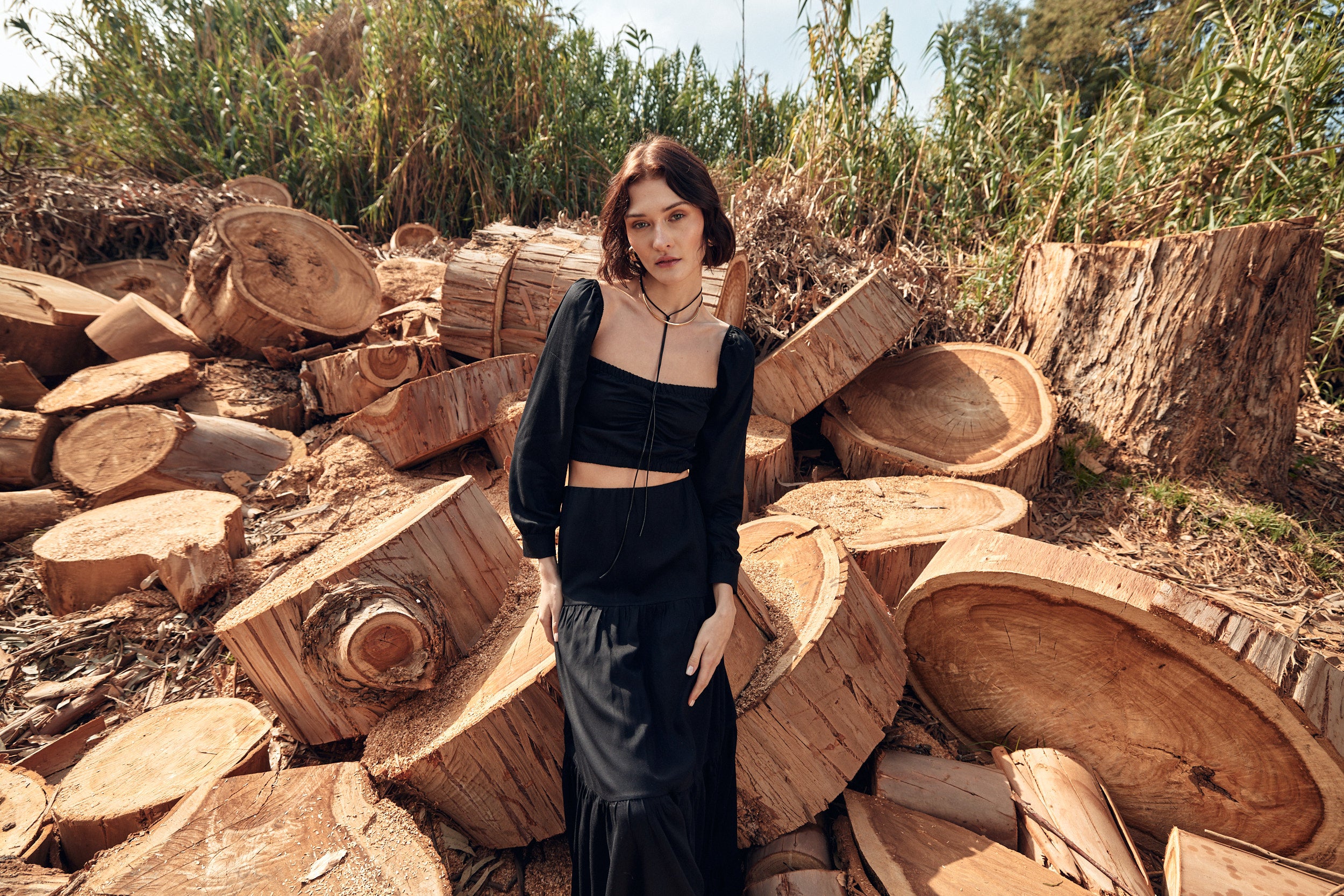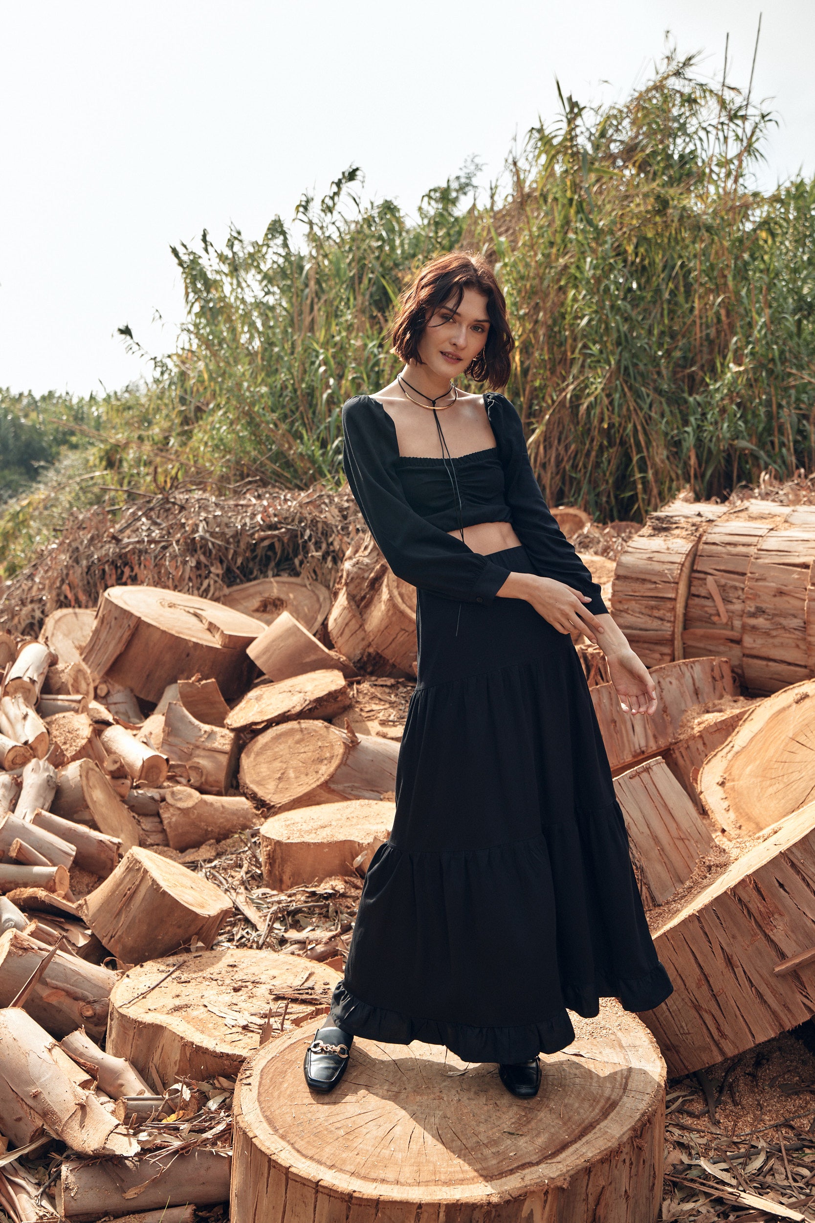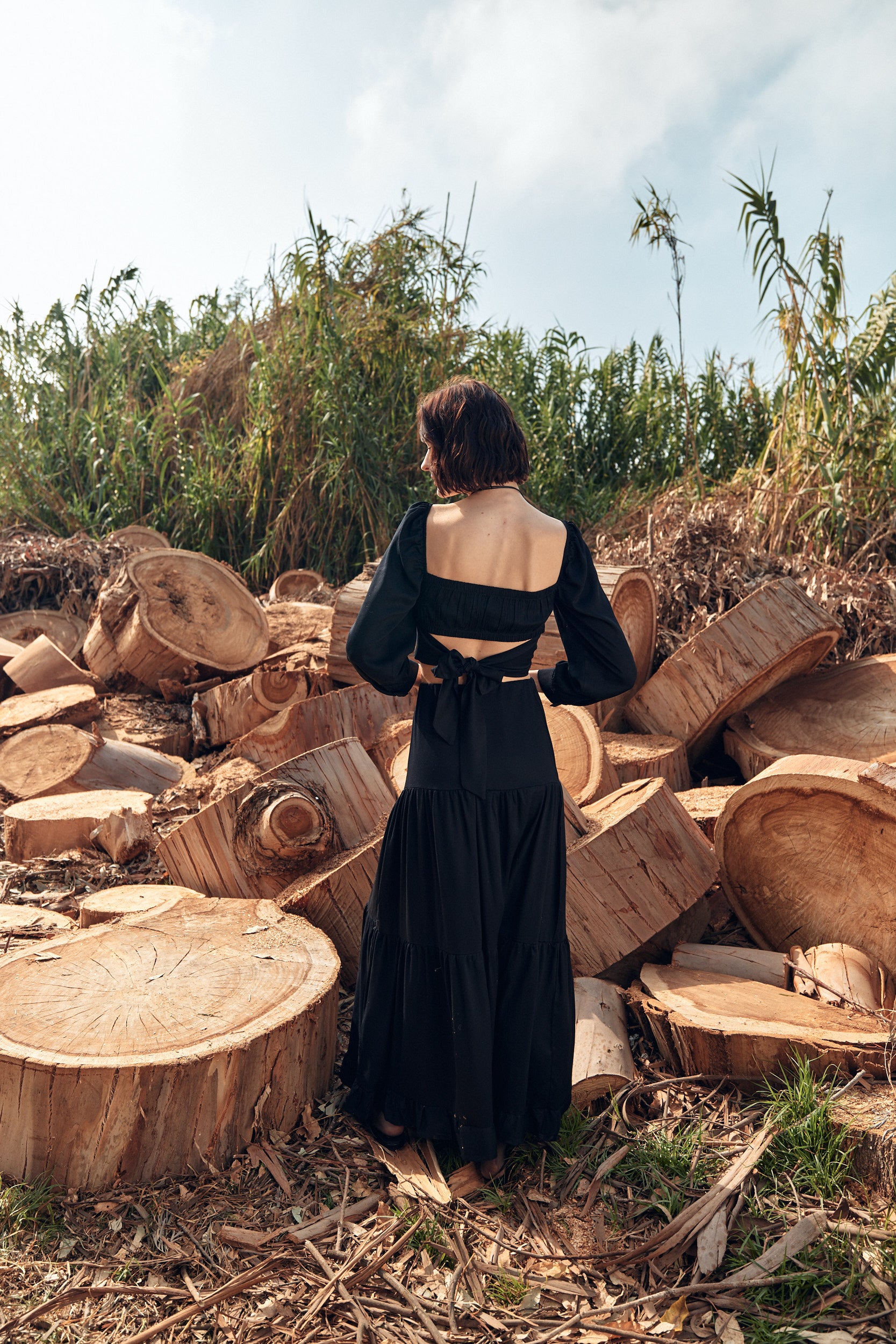 Nuestro top Lille Noir es un modelo único y elegante. Se destaca por su novedosa forma y detalles. Es un top apegado al cuerpo, con manga larga y tajalí abotonado en sus puños.