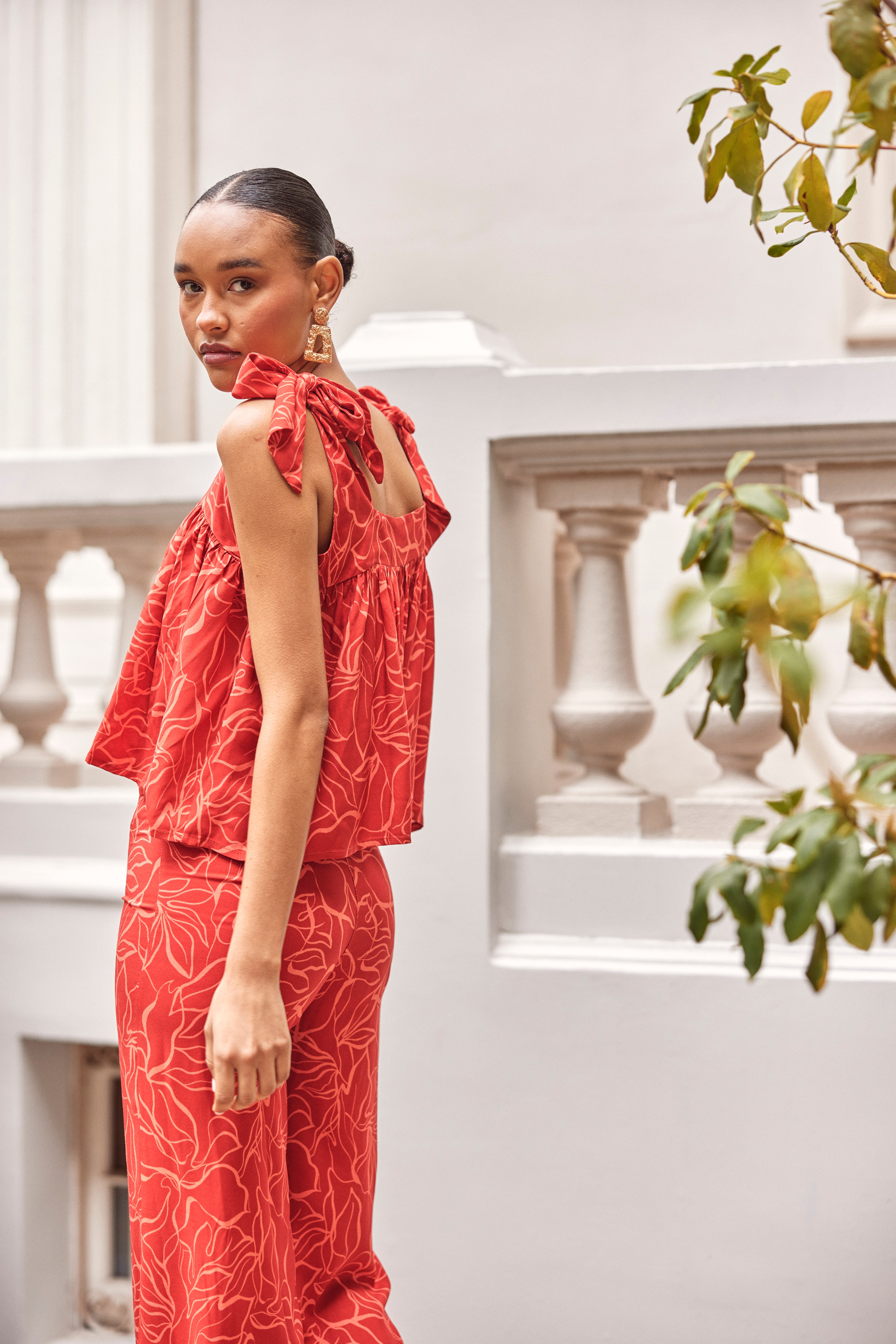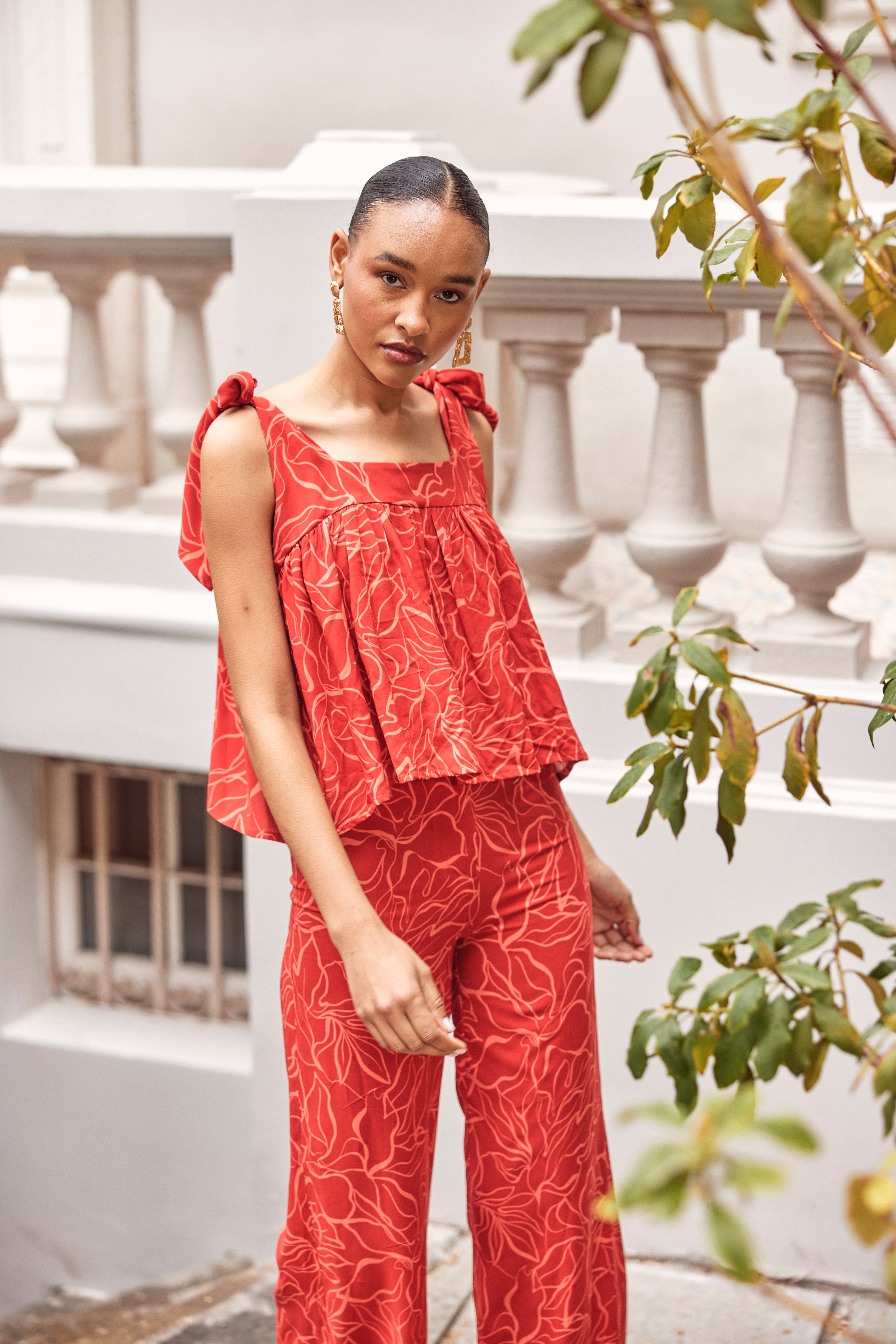 Nuestro top Nurá Abe se caracteriza por ser una prenda femenina y versátil. Tiene escote cuadrado y cintas en los hombros las cuales permiten adaptar el largo de la prenda. Es un top cómodo e ideal para la época más calurosa debido a la amplitud que tiene.