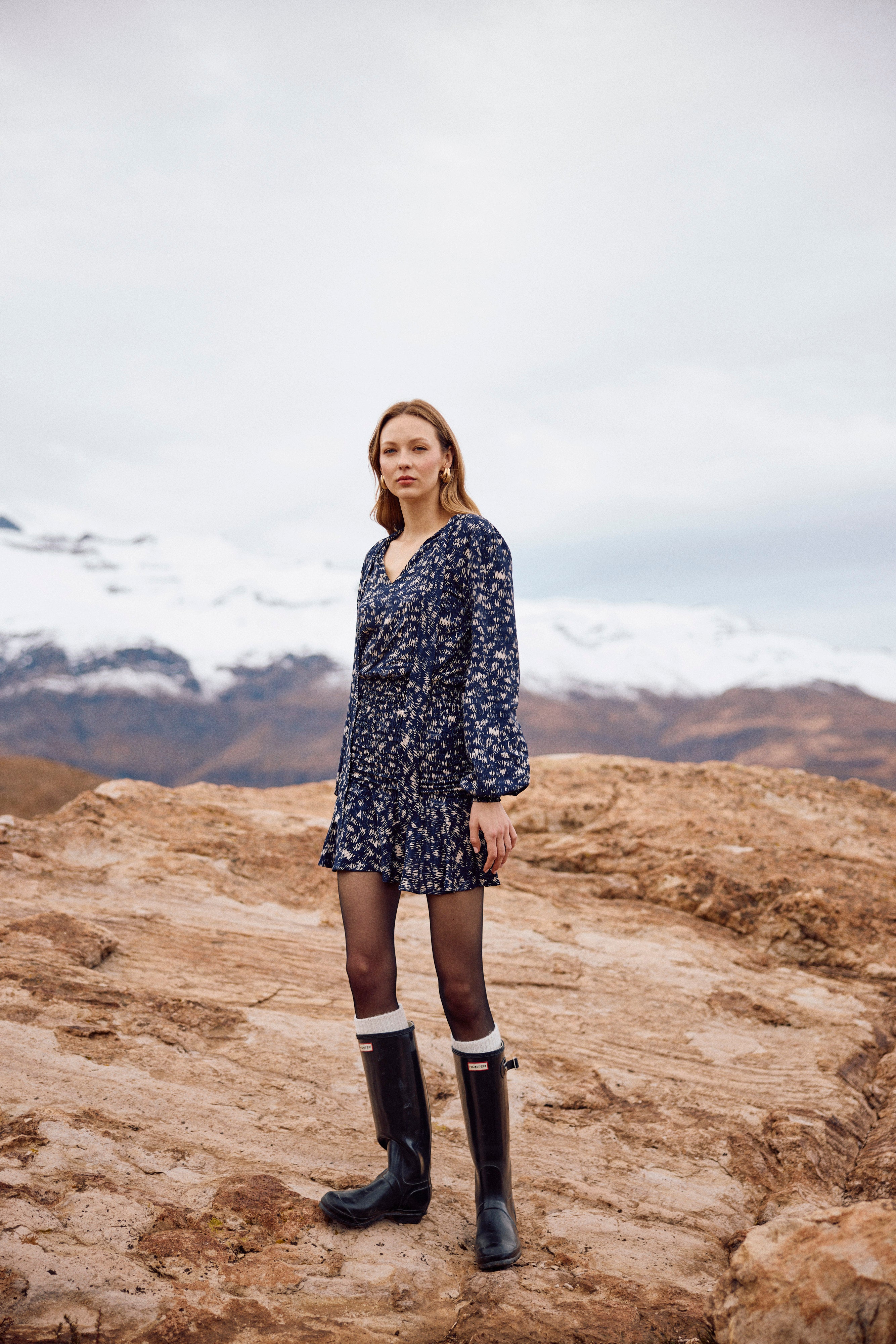 El vestido Amaphía combina feminidad y estilo en un diseño moderno. Su parte superior ligeramente abullonada con escote en V aporta volumen y elegancia, mientras que el lazo en el cuello es un detalle versátil que puedes ajustar y amarrar de diferentes formas, dándole un toque personal y único. La falda corta con panal de abeja en la parte inferior añade textura y un detalle distintivo, haciendo de esta prenda una opción sofisticada y versátil.