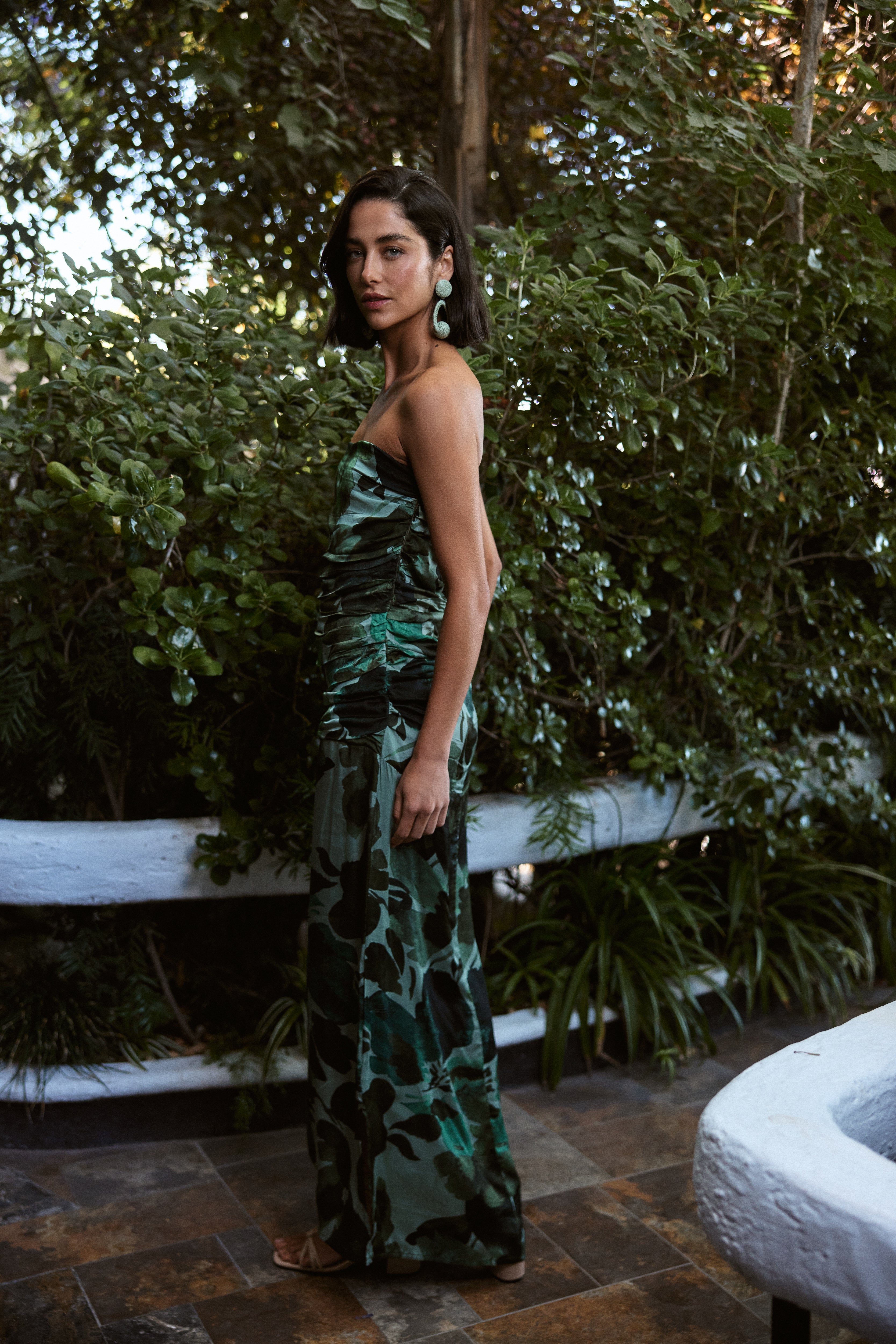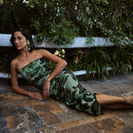 El Vestido Aranua destaca por su silueta femenina y sofisticada, diseñada para realzar la figura con un estilo fluido y de alta costura. Su corte strapless (sin tirantes) aporta un look elegante y atemporal, mientras el drapeado frontal en el busto y torso crea un efecto estilizador que acompaña naturalmente las curvas. El diseño largo y de corte recto con caída fluida lo convierte en una prenda imponente, perfecta para cualquier ocasión especial en la que quieras lucir distinguida y segura.
