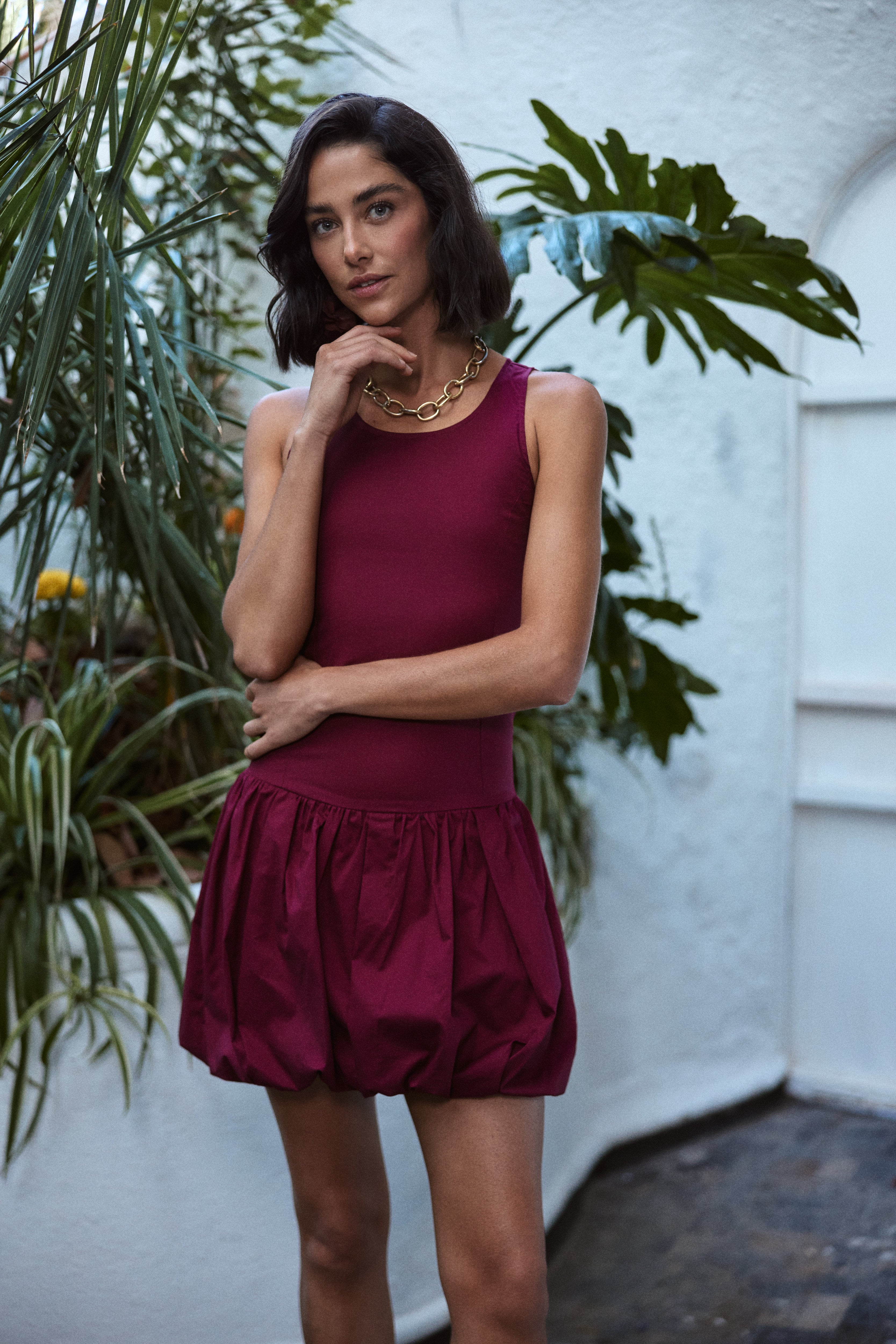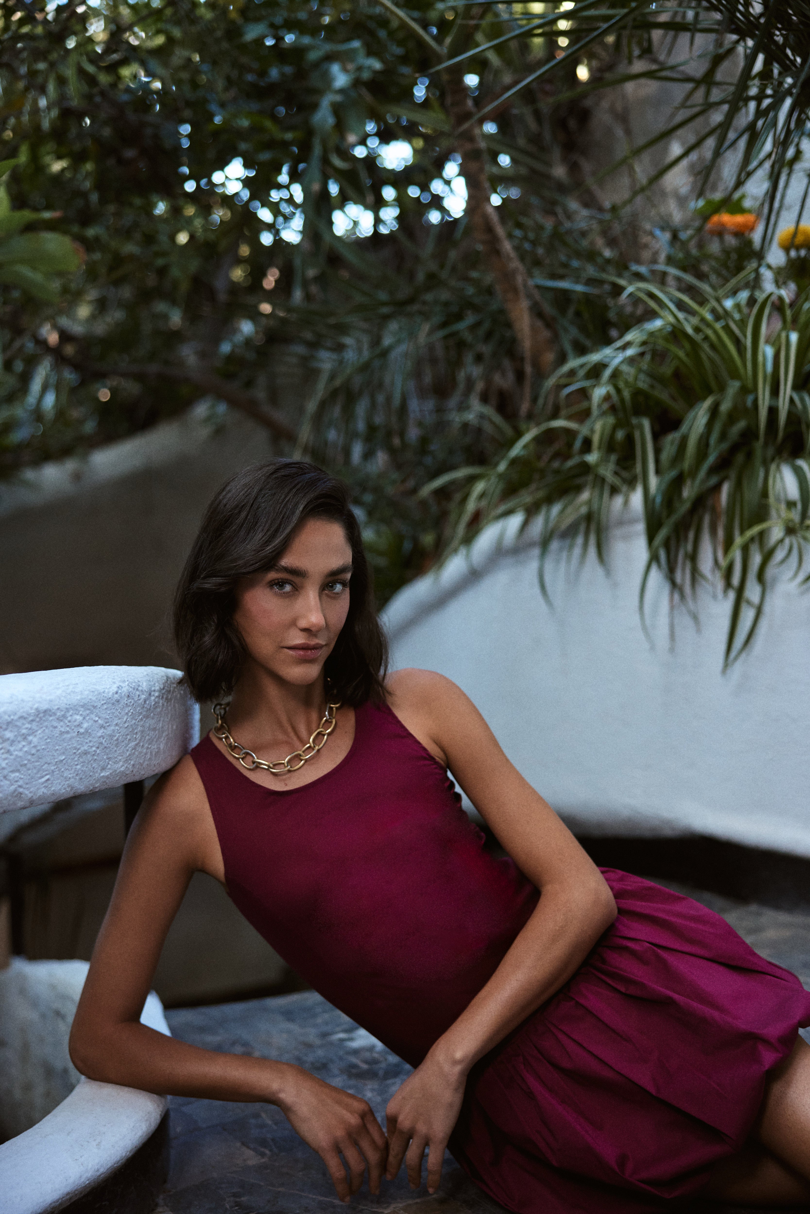 El vestido Ela combina elegancia moderna y versatilidad en una propuesta que destaca por su diseño femenino y estructurado. Su parte superior de líneas limpias aporta un look estilizado, mientras la falda con volumen sutil agrega movimiento y un toque distintivo sin perder delicadeza.