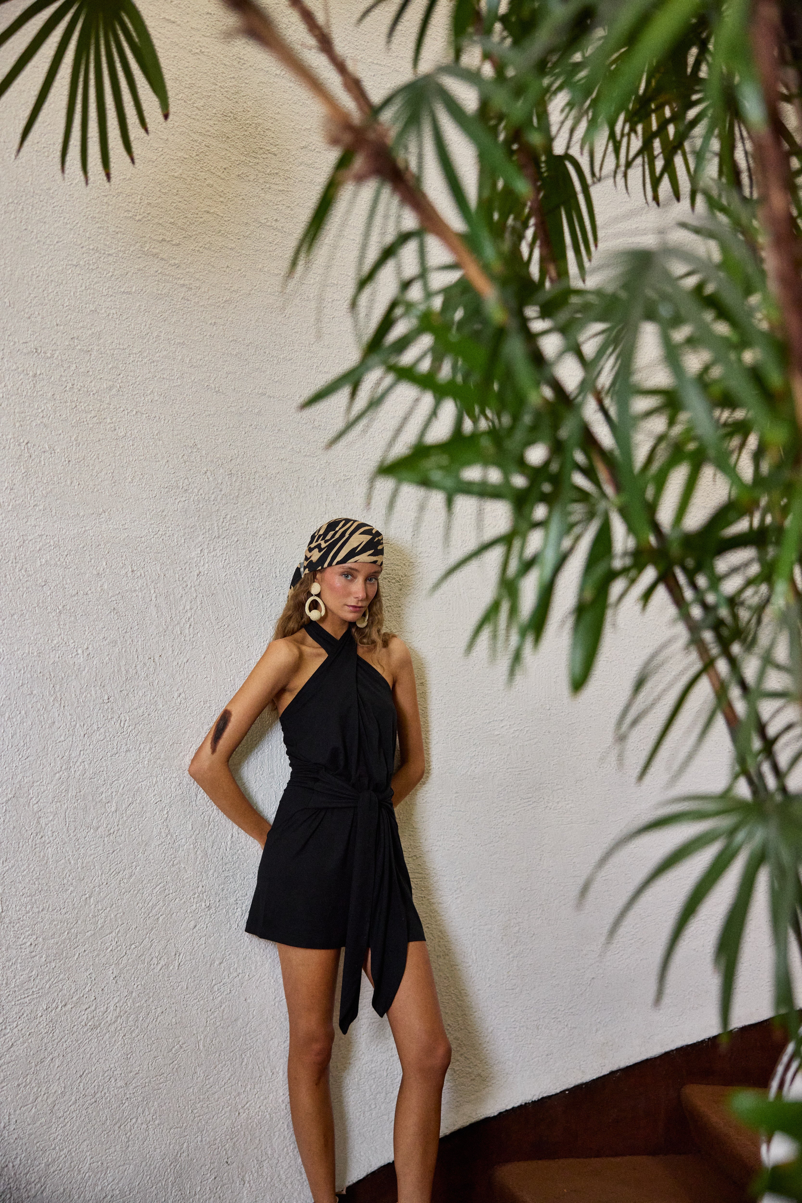 El Vestido Lunara destaca por su silueta femenina y sofisticada, diseñada para realzar la figura con un estilo fluido y de alta costura. Su corte halter cruzado aporta un look dramático y elegante, mientras el amarre ajustable en la cintura crea un efecto estilizador y ajustado que acompaña naturalmente las curvas. El diseño mini/corto y de corte recto lo convierte en una prenda llamativa, perfecta para cualquier ocasión especial en la que quieras lucir distinguida y segura.