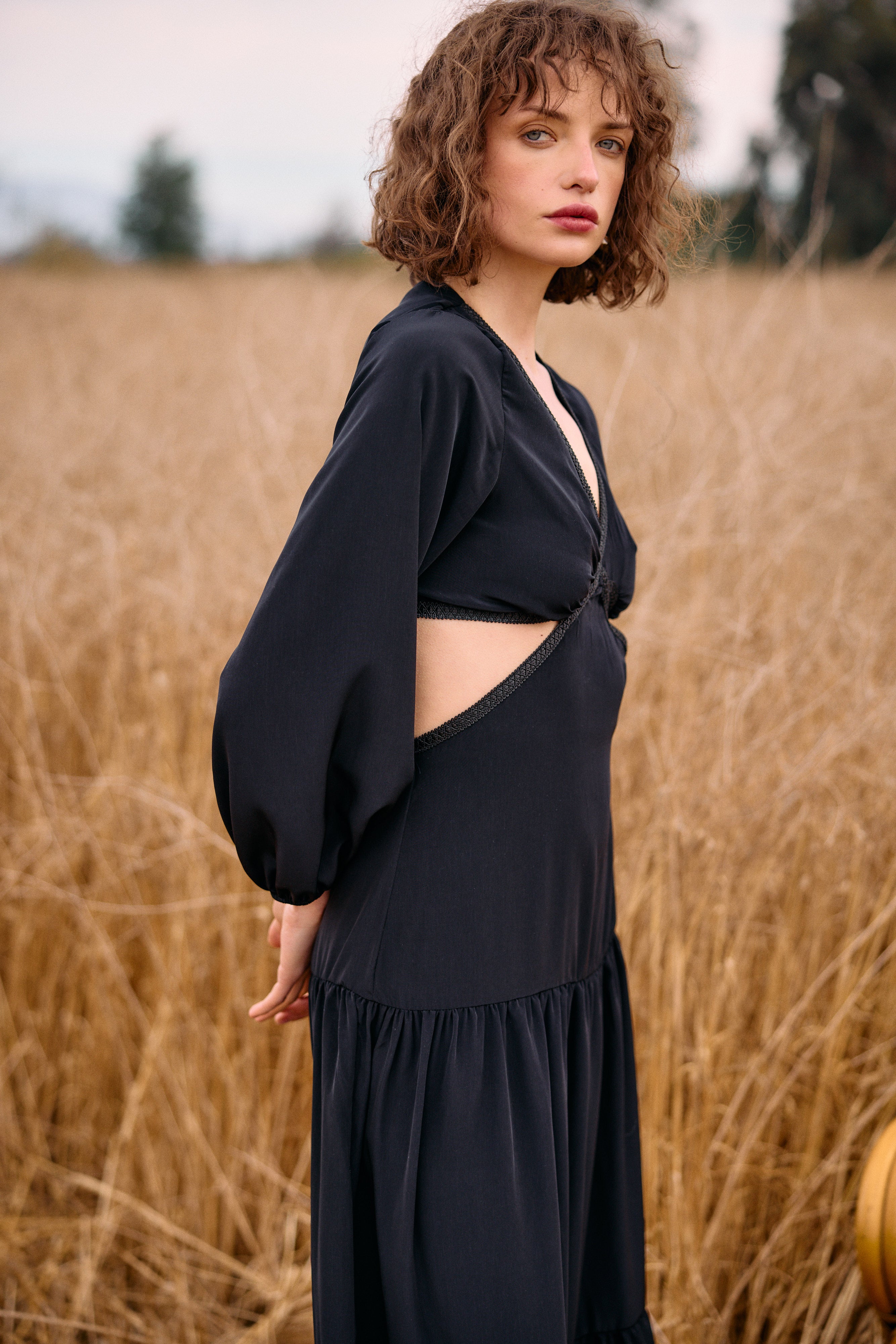 Nuestro vestido Sawan es nuestra prenda más elegante de la colección, siendo ideal para cualquier ocasión más formal donde se quiera destacar. Se caracteriza por sus acabados y detalles en la zona del escote y en sus aberturas laterales que además lo hacen ser un vestido atrevido y femenino a la vez. Este vestido se puede utilizar en distintas ocasiones, ya que tiene detalles que lo hacen ser distinguido, exclusivo y único.