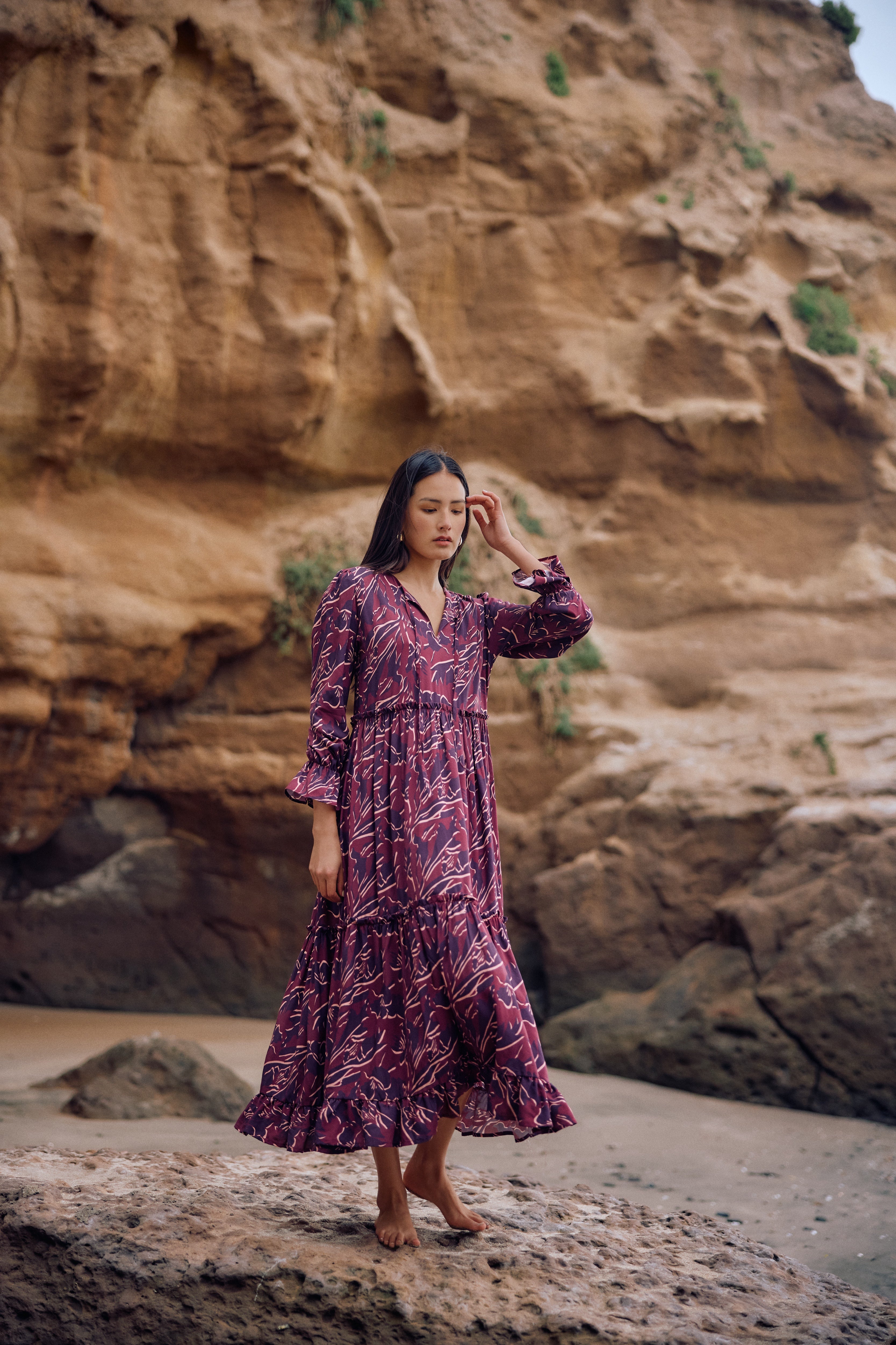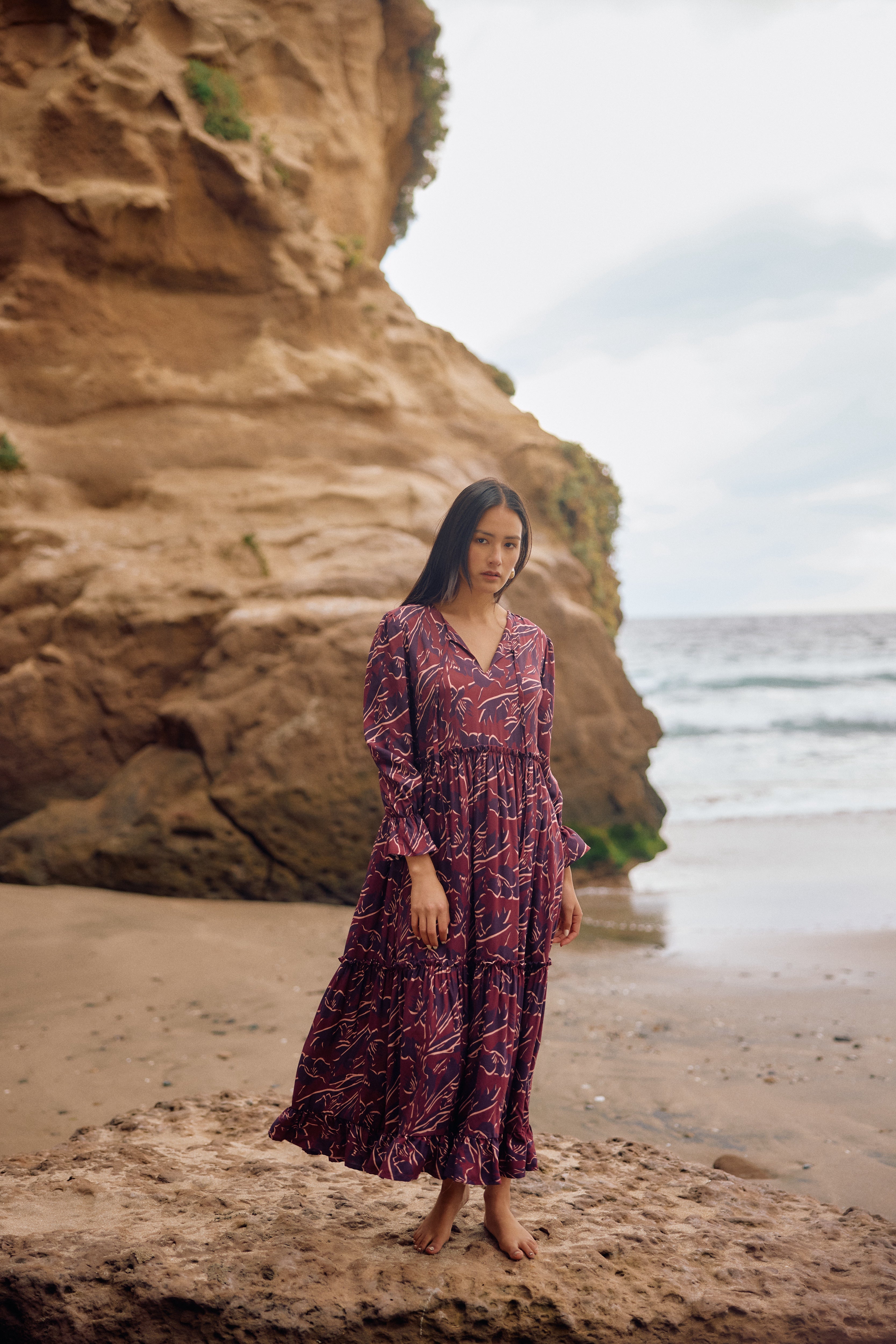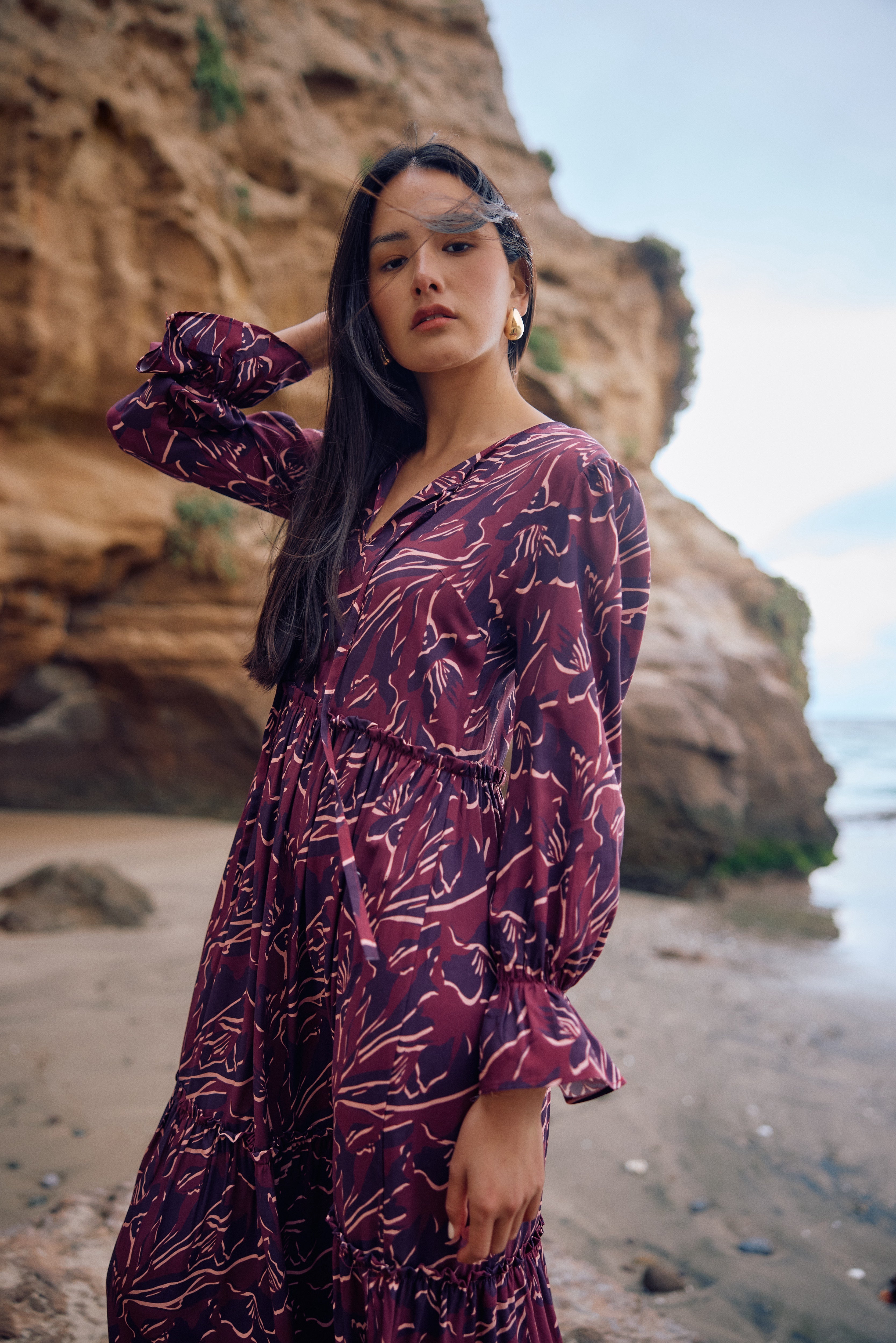 Nuestro vestido Toya es una prenda ideal para el día a día, es relajada, ligera e ideal para cualquier silueta que tenga como prioridad la comodidad al vestir. Tiene escote en V el cual puede cerrarse mediante una cinta, manga larga con elástico en los puños y un largo faldón que entrega una gran amplitud en el ruedo.