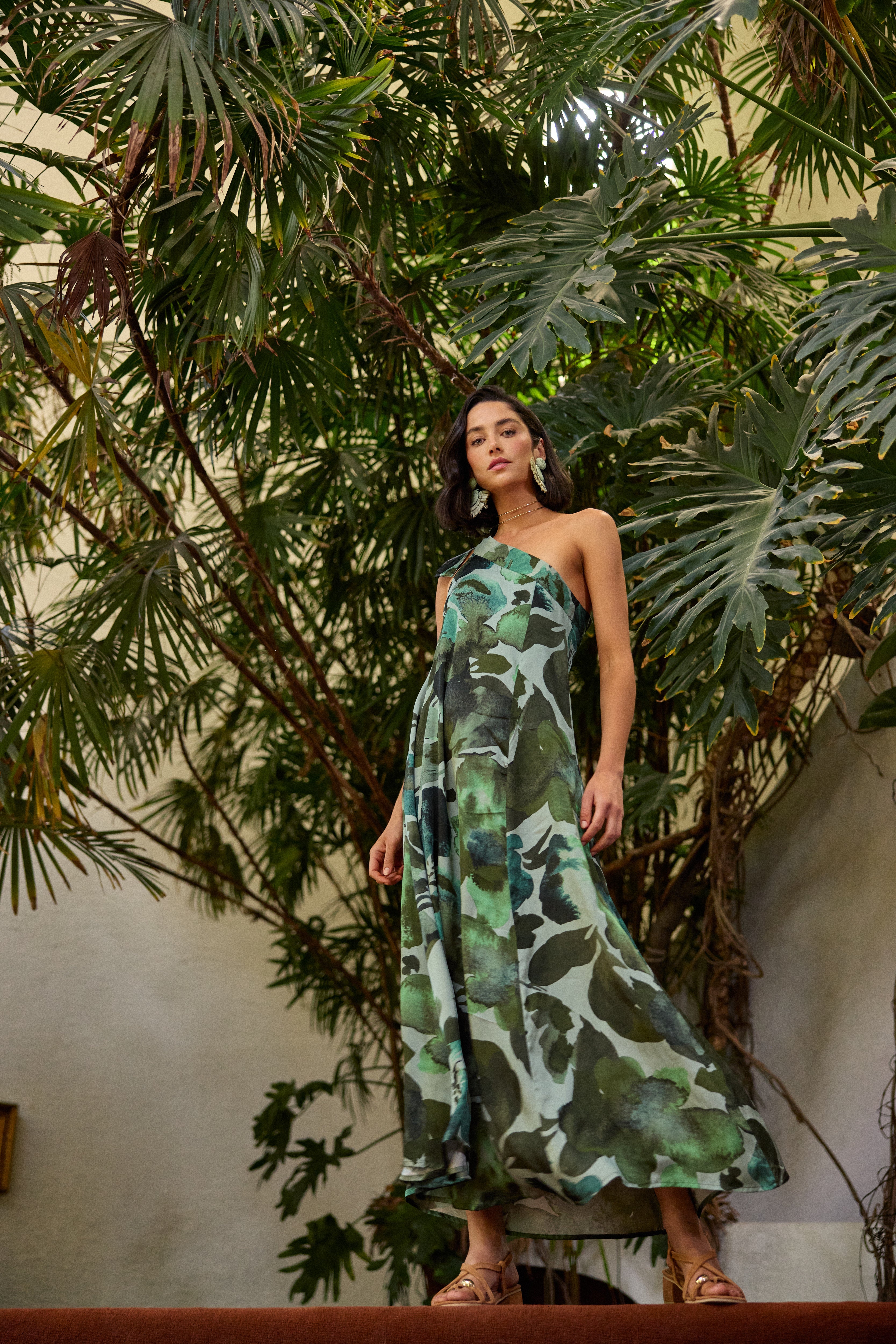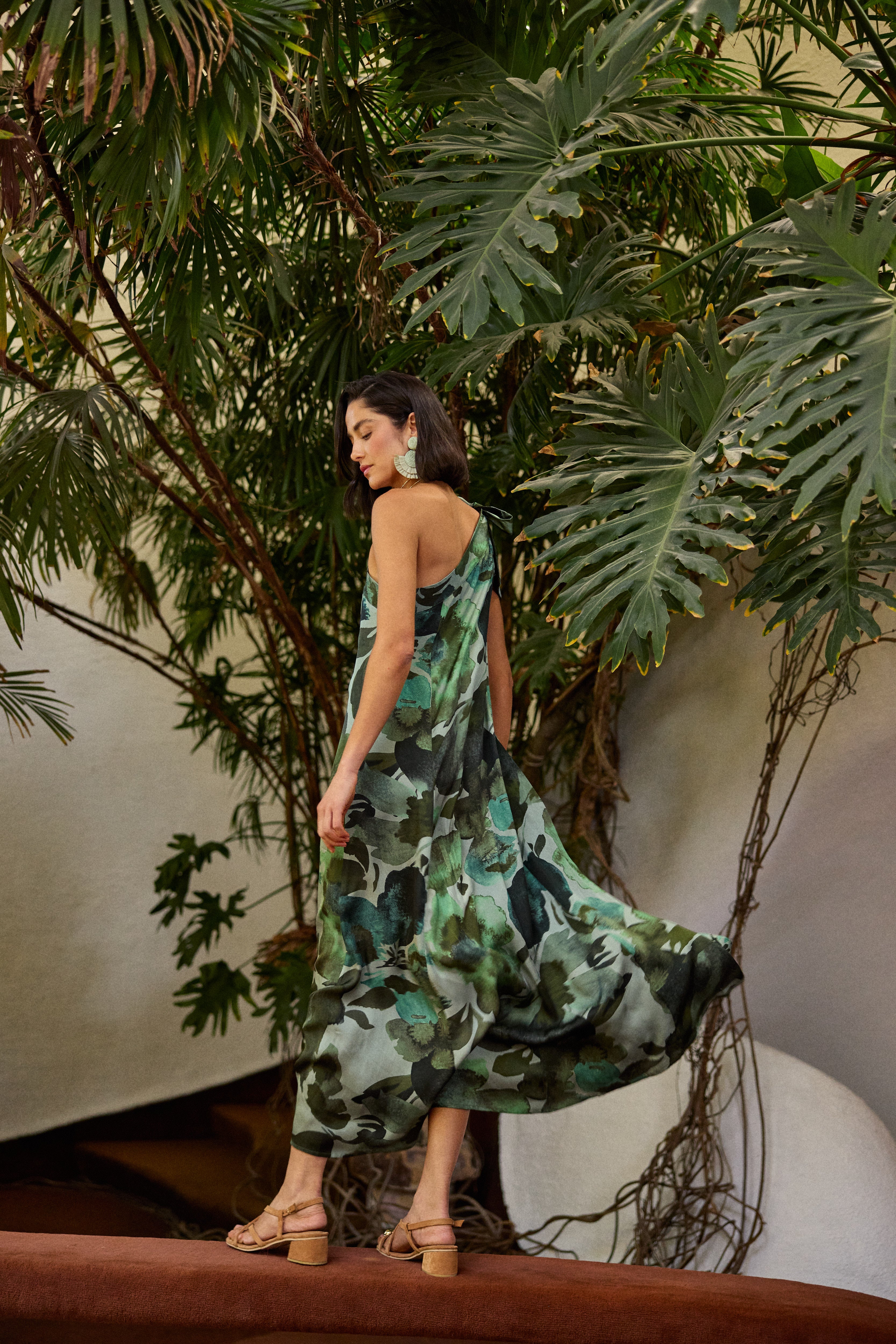 Este estampado en flores verdes destaca por su frescura, naturalidad y armonía, ideal para ocasiones donde busques proyectar un aire luminoso, sereno y sofisticado. Sus tonos inspirados en la naturaleza se combinan con la caída suave de la prenda para crear un efecto visual equilibrado y elegante.